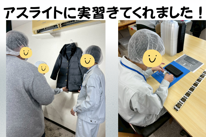 投稿日:2026.02.12 最終更新日:2026.02.12 アスライト 実習に来てくれました! あいらぼの利用者である高橋さんが、1月26日〜2月6日の期間、アスライトにて実習に参加されました。 実習期間中は、Webショップ代行業務をはじめ、シール貼り・バリ取りなど複数の業務を体験。どの作業にも丁寧に取り組まれ、指示を確認しながら一つひとつ確実に進める姿が印象的でした。 今回の実習が、高橋さんにとって新たな経験や今後のステップにつながる機会となれば幸いです。今後のご活躍を応援しています。 この記事をシェアする X(旧Twitter) Facebook LINE